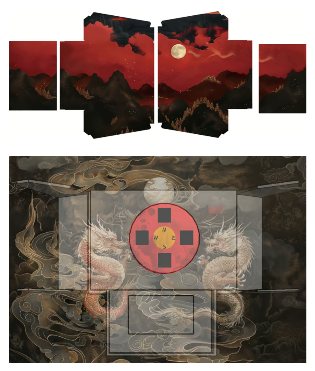 We have meticulously marked the positions of the four mythical creatures—east, west, south, and north—making your divination journey more intuitive. The attributes of these creatures—metal, wood, water, and fire—are beautifully reflected in the colors white, green, black, and red. Notably, we have also incorporated the "earth" element represented by the color yellow, showcasing our deep understanding of the Five Elements philosophy.