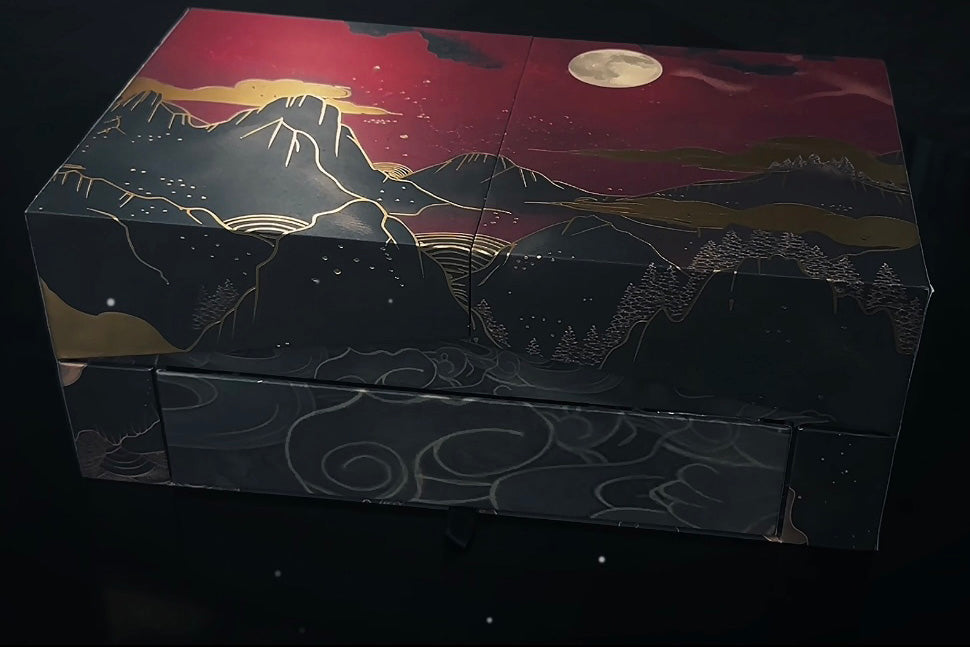 Our display stand, featuring both an outer and inner box, presents a dual perspective that captures the legendary essence of mountains and seas.